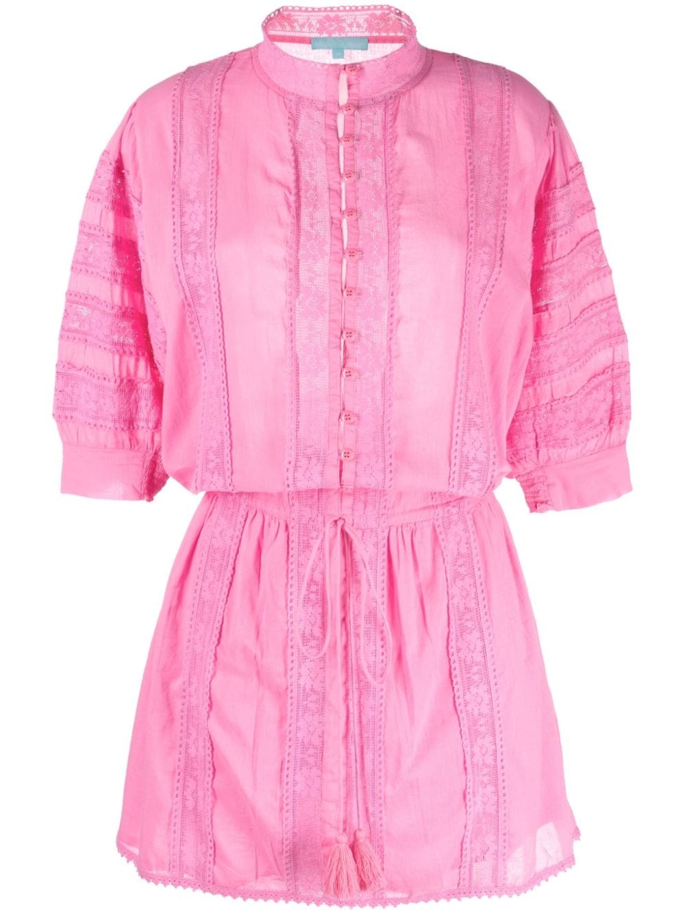Rita cotton minidress Highlights - Pink - Cotton - Tonal stitching - Lace detailing - Tassel detail - Round neck - Front button fastening - Half-length sleeves - Drawstring waist - Straight hem - Thigh-length Imported Composition Cotton 100% SIZE & FIT Model measurements Height 5 ft 10 in(1.78 m) Bust/Chest 30.31 in(77 cm) Hips 34.64 in(88 cm) Waist 24.01 in(61 cm) FittingInformation Designed to be unstructured, offering a loose fit throughout The belt offers adjustability for fitted preferences Made from a lightweight non-stretch fabric This piece fits true to size – take your usual size Washing instructions Hand Wash
