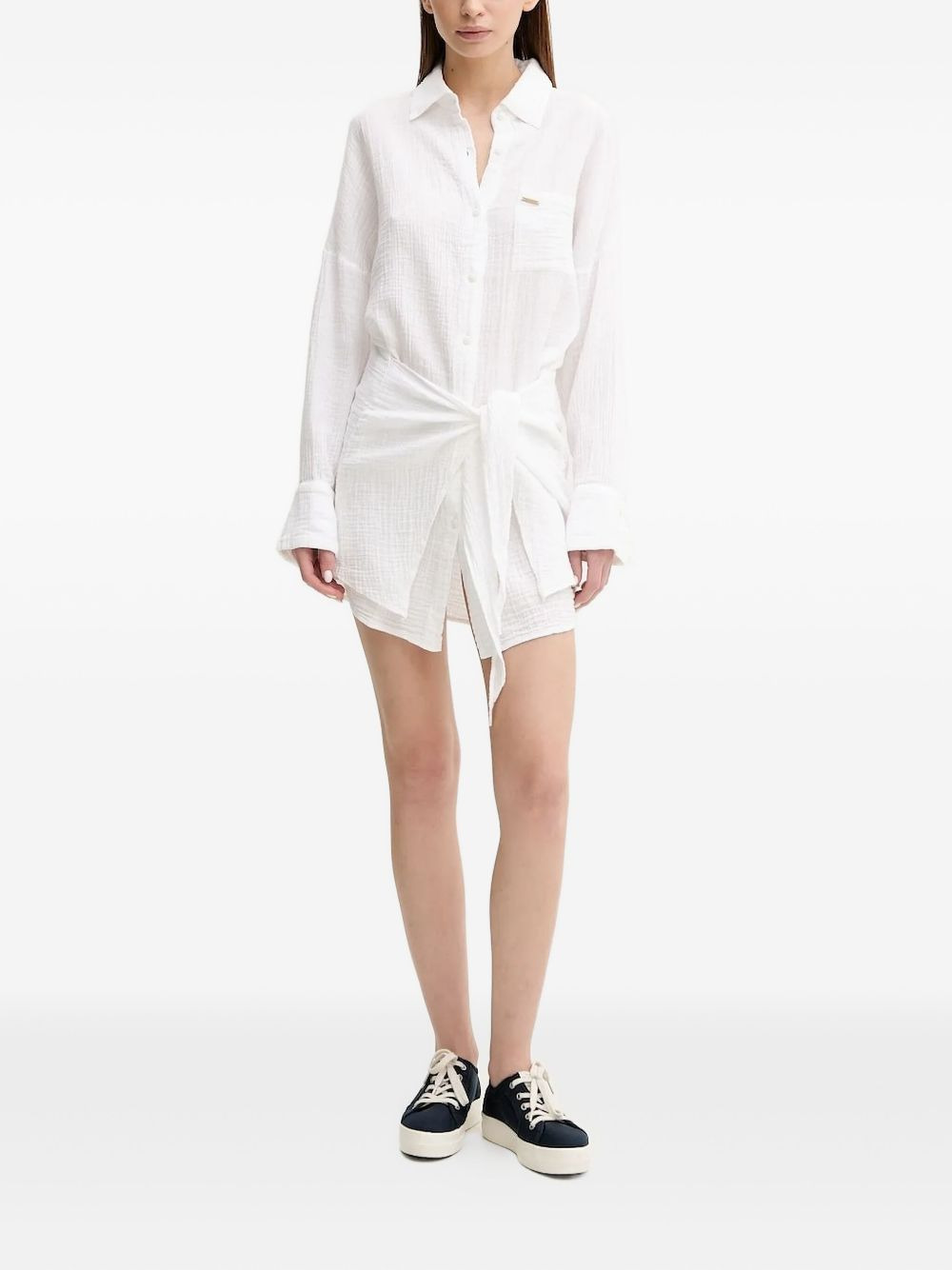 Sara tie-front crinkled cotton-gauze mini shirt dress White