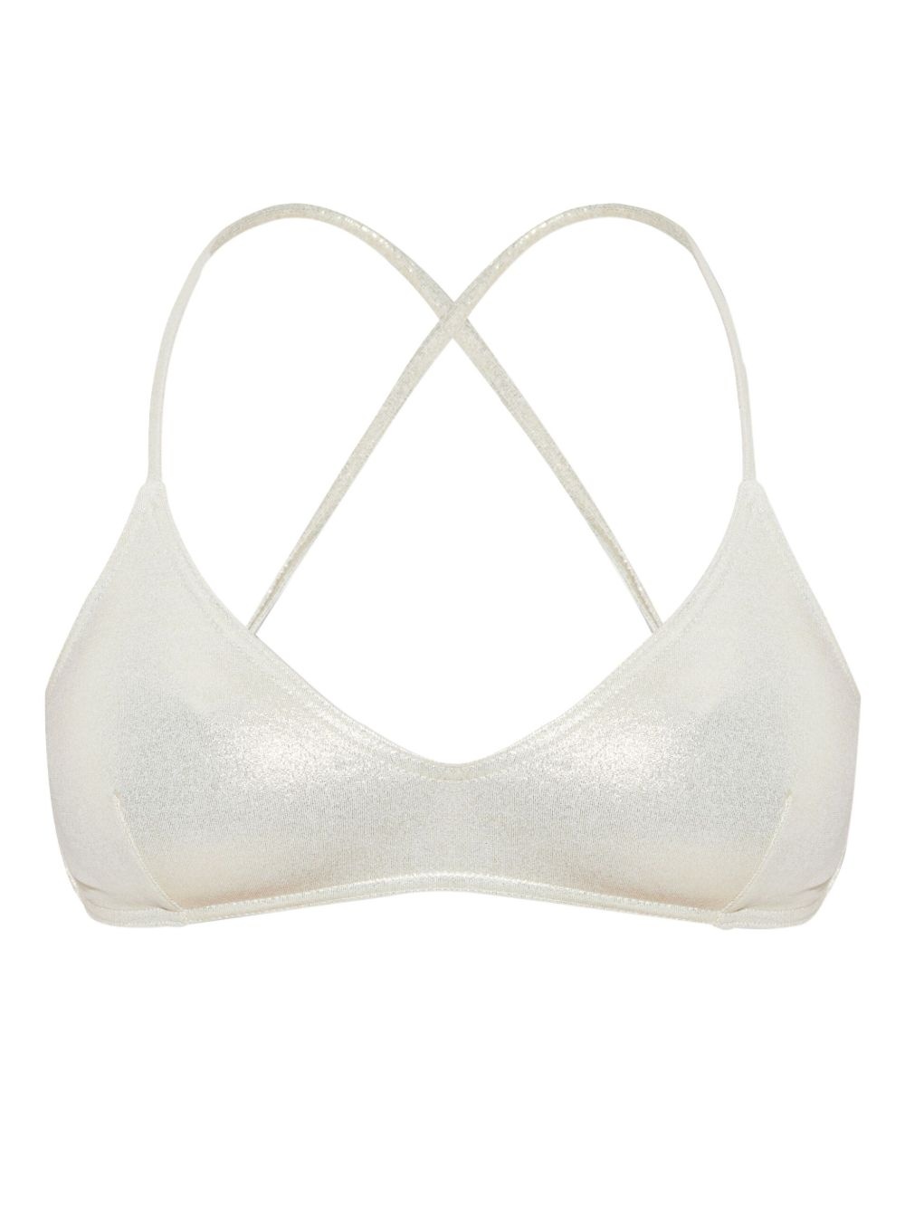 Singapore bikini top Highlights - Gold-tone - Rear tie fastening - Metallic finish - Crossover shoulder straps - Be mindful to try on swimwear over your own garments. Made in Italy Composition Polyamide 86%, Spandex/Elastane 14%