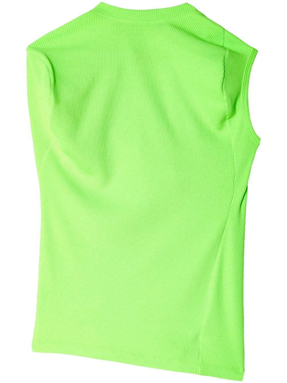 fine-ribbed asymmetric-hem top Highlights - Fluorescent green - Fine ribbed - Round neck - Sleeveless - Asymmetric hem Made in United States Composition Polyester 100%