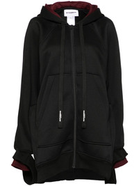 Longline Zip-Up Hoodie Highlights - Black - Detachable hood - Drawstring hood - Front zip fastening - Drop shoulder - Long sleeves - Layered design - Distressed effect - Ribbed cuffs - Asymmetric hem Made in United States Composition Polyester 100%