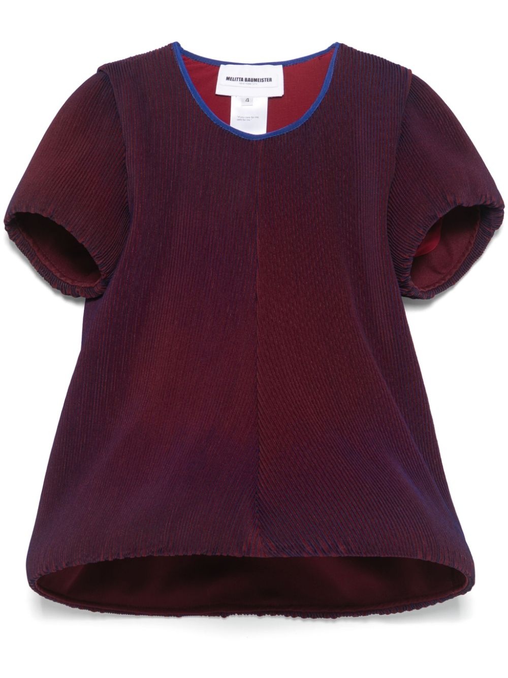 plisse top Highlights - Royal blue - Round neck - Short sleeves - A-line Made in United States Composition Lyocell 94%, Spandex/Elastane 6%