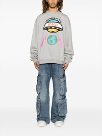illustration-print cotton sweatshirt Highlights - Grey - Cotton - Jersey texture - Tonal stitching - Melange effect - Illustration-style print - Crew neck - Drop shoulder - Long sleeves - Ribbed cuffs and hem - Slogan patch to the rear - Fleece lining - Straight hem Made in Italy Composition Cotton 100% SIZE & FIT Model measurements Height 6 ft 2 in(1.88 m) Bust/Chest 35.43 in(90 cm) Hips 36.61 in(93 cm) Waist 27.95 in(71 cm) FittingInformation Designed to be unstructured, offering a loose fit throughout Made from a midweight non-stretch fabric, this piece offers minimal elasticity when worn This piece fits true to size – take your usual size