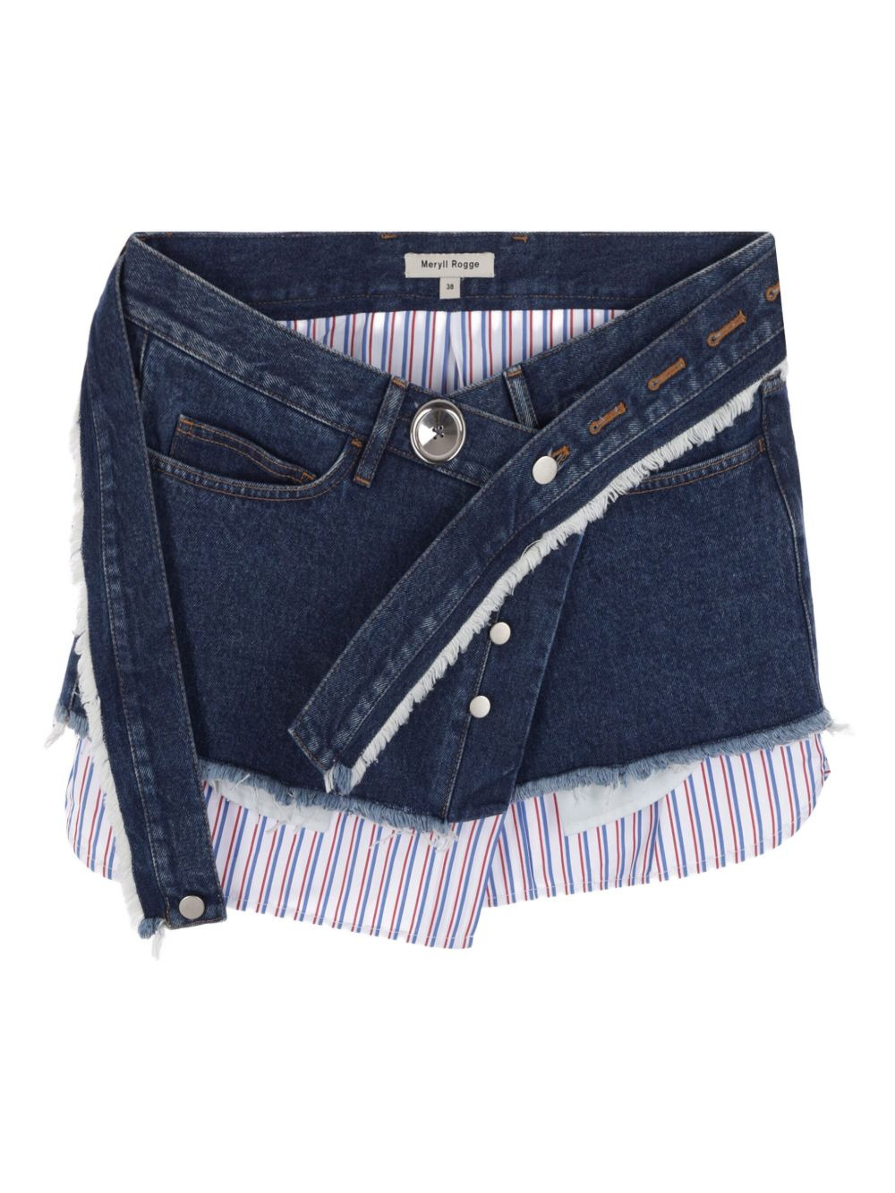 belted denim skirt Highlights - Blue - Cotton - Denim - Classic five pockets - Front button fastening - Contrasting trim - Tied waist - Fringe detailing Imported Composition Cotton 100% Washing instructions Read Manufacturer Guidelines