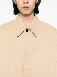 single-breasted coat Highlights - Light beige - Concealed front button fastening - Internal slip pocket - American rear vent - When buying this unisex item, keep in mind that it is graded in standard men's sizing. Made in Italy Composition Lining: Viscose 100% Outer: Polyester 52%, Cotton 38% SIZE & FIT Model measurements Height 6 ft 2 in(1.87 m) Bust/Chest 33.07 in(84 cm) Hips 35.43 in(90 cm) Waist 26.77 in(68 cm) FittingInformation This unisex piece is designed for an oversized fit whether you usually select women's or men's sizes The internal shoulder pads offer a structured shape Made from a midweight non-stretch fabric
