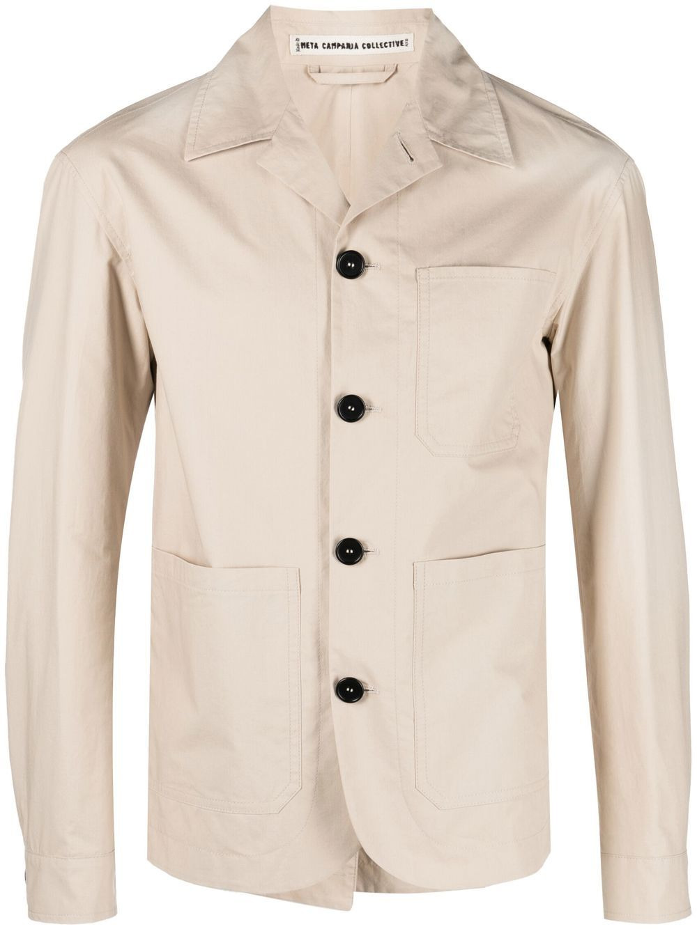 Cuban-collar organic-cotton shirt-jacket Highlights - Beige - Organic cotton - Cuban collar - Button fastening - Chest patch pocket - Two side patch pockets - Long sleeves - Buttoned cuffs - Central rear vent Made in Italy Composition Organic Cotton 100% SIZE & FIT Model measurements Height 6 ft 2 in(1.87 m) Bust/Chest 36.41 in(92.5 cm) Hips 37 in(94 cm) Waist 29.52 in(75 cm) FittingInformation This piece fits small – you might want to get one size up Cut for a slim fit Made with a mid-weight non-stretch fabric