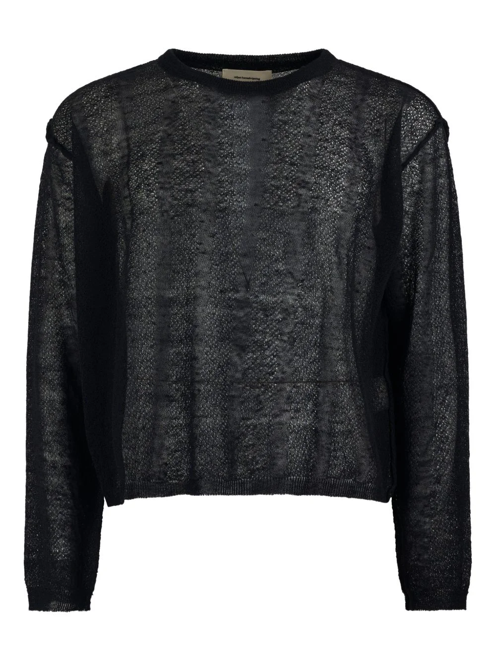 open-work long-sleeve T-shirt Highlights - Black - Round neck - Long sleeves - Ribbed cuffs - Ribbed hem Imported Composition Wool 90%, Polyamide 10% Washing instructions Read Manufacturer Guidelines