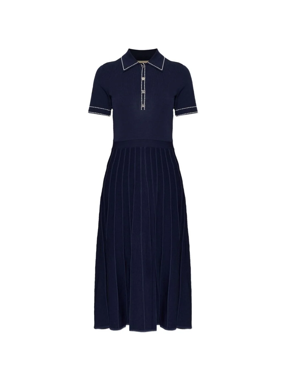contrast-stitching midi dress Highlights - Blue - Contrast stitching - Pleated skirt - Point collar - Button fastening - Short sleeves Imported Composition Viscose 64%, Nylon 34%, Elastane 2% Washing instructions Read Manufacturer Guidelines