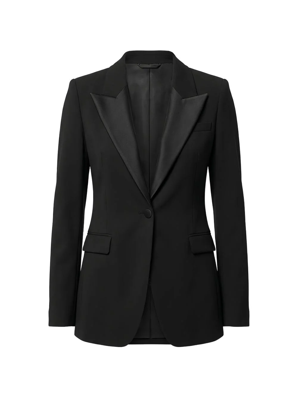tuxedo blazer Highlights - Black - Notched lapels - Single button fastening - Chest pocket - Flap pockets - Buttoned cuffs Imported Composition Lining: Polyester 100% Outer: Polyester 53%, Wool 44%, Elastane 2%, Nylon 1% Washing instructions Dry Clean Only