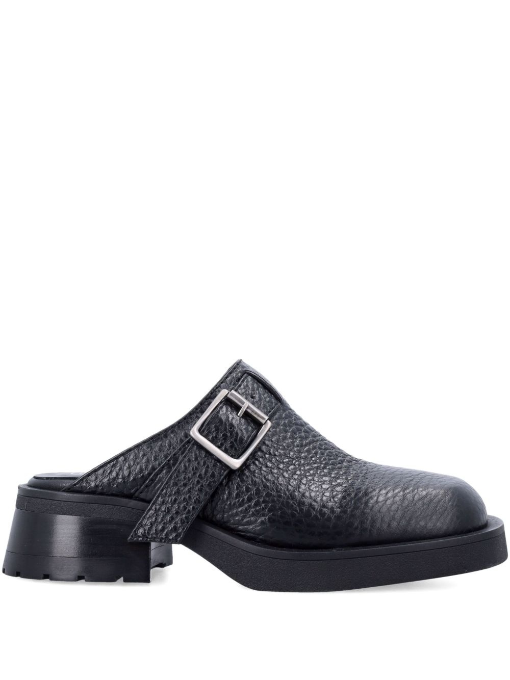 50mm Aroa mules Highlights - Black - Slip-on style - Decorative buckle detailing - Grained texture - Block heel Imported Composition Outer: Calf Leather 100% Sole: Rubber 100% Lining: Artificial Leather 100% SIZE & FIT Measurement HEEL 1.96 in(5 cm)