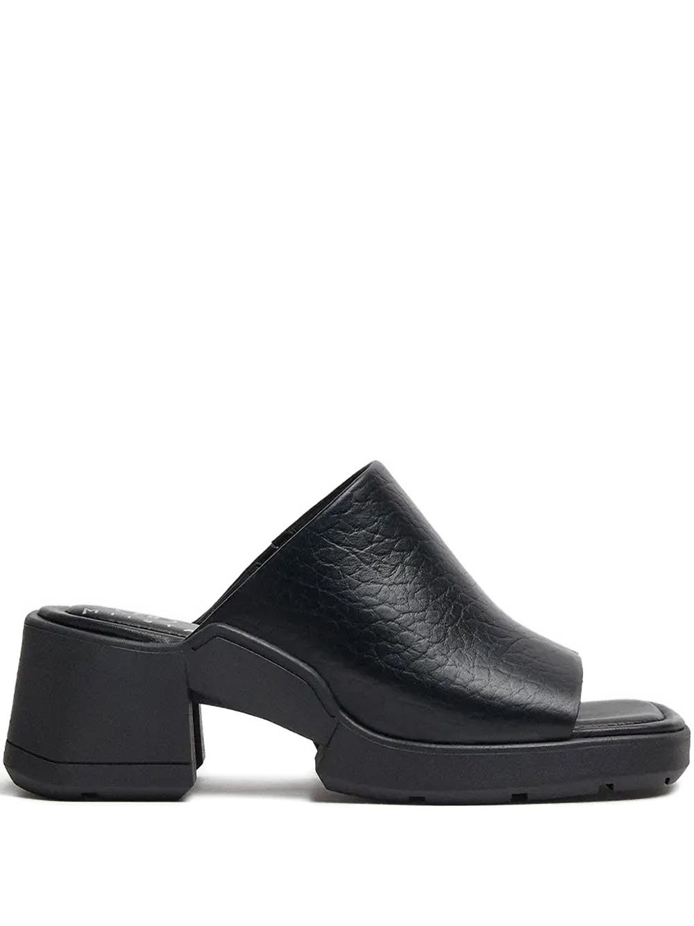 block-heel open-toe slides Highlights - Black - Textured leather - Open toe - Block heel - Slip-on style - Square toe Imported Composition Outer: Leather 100% Sole: Rubber 100% Lining: Leather 100%
