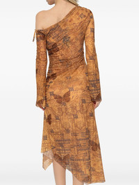 abstract-pattern print midi dress Highlights - Caramel brown - Asymmetric neck - Long sleeves - Asymmetric hem Imported Composition Polyamide 93%, Elastane 7%