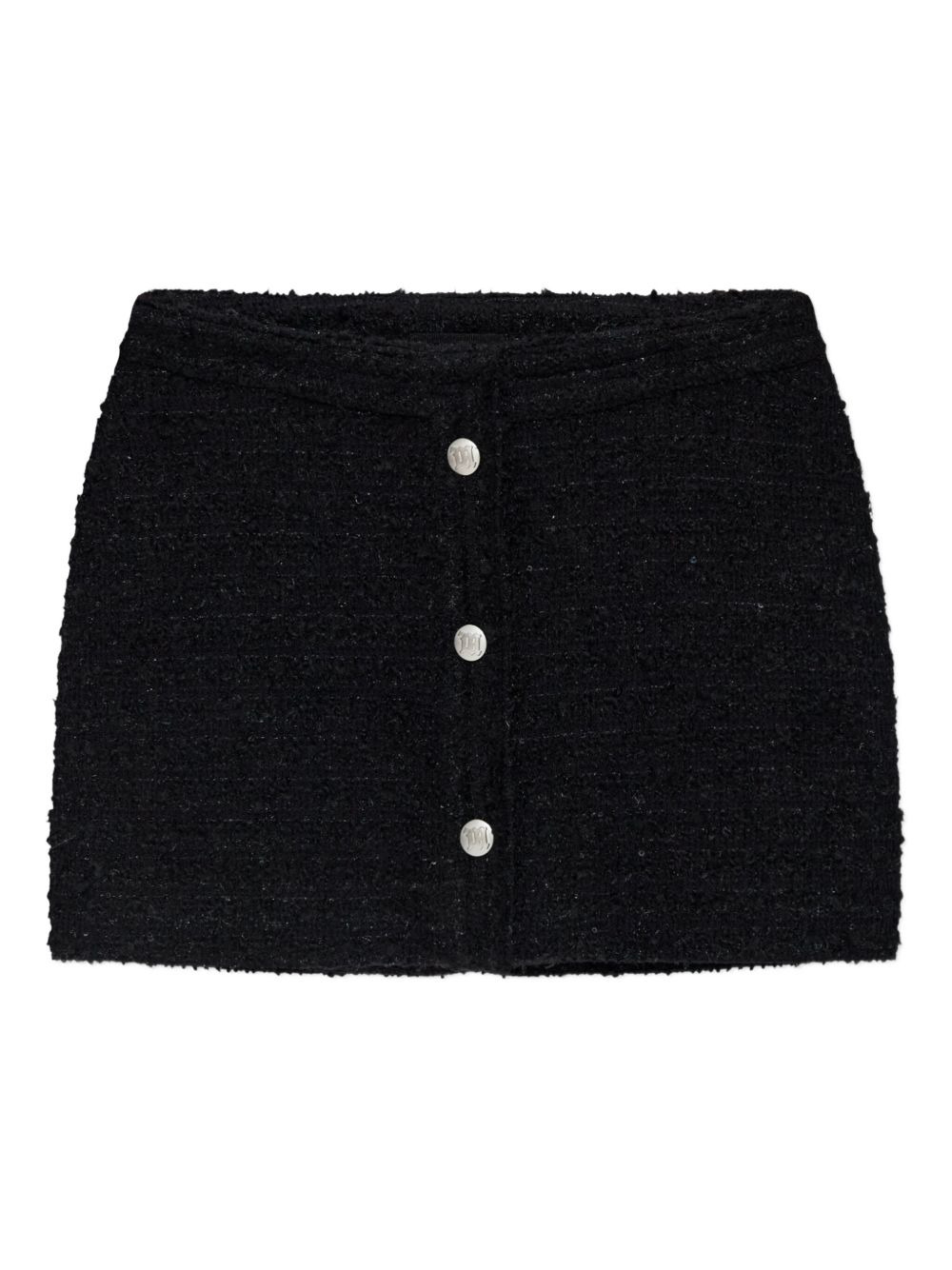 boucle mini skirt Highlights - Black - Front button fastening - Boucle construction - Mid-rise Imported Composition Outer: Cotton 57%, Polyester 31%, Polyamide 6%, Virgin Wool 2%, Mohair 2%, Lurex 1%, Elastane 1% Lining: Polyester 94%, Elastane 6% Washing instructions Read Manufacturer Guidelines
