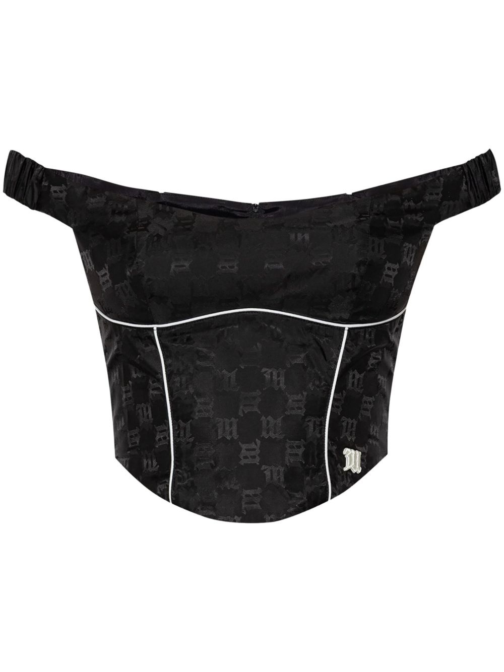 corset style top Highlights - Black - Rear zip fastening - Monogram jacquard - Contrasting trim - Off-shoulder Imported Composition Polyester 60%, Polyamide 40%