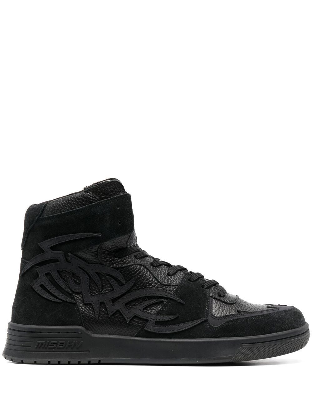 Court high-top sneakers leather black geometric panelled design ankle-length front lace-up fastening round toe flat rubber sole Imported Composition Lining: Fabric 100%, Calf Leather 100% Sole: Rubber 100% Outer: Calf Leather 100% SIZE & FIT Measurement HEEL 1.77 in(4.5 cm) HEIGHT 4.52 in(11.5 cm) Sole height 0.78 in(2 cm)