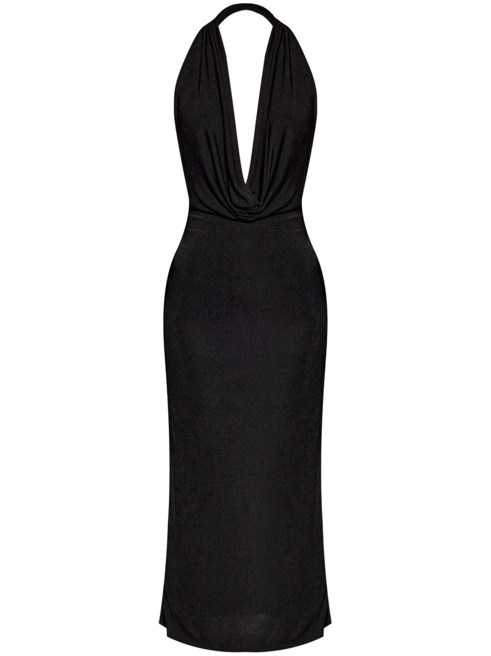 cowl-neck midi dress Highlights - Black - Side slit - Halterneck - Open back Imported Composition Polyester 97%, Spandex/Elastane 3%