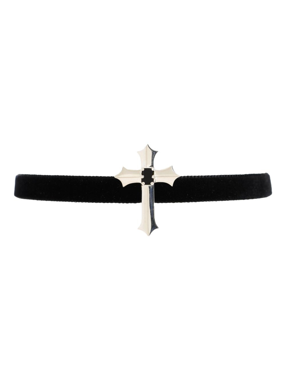 cross pendant choker Highlights - Black - Cross pendant - Lobster clasp fastening - Adjustable chain - Velvet band - Metal hardware Imported