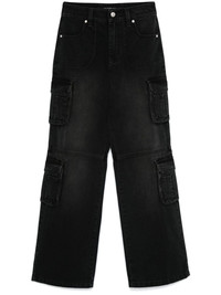 denim cargo jeans Highlights - Black - Cotton - Washed denim - Front button and zip fastening - High-rise - Belt loops - Two front pouch pockets - Multiple cargo pockets - Silver-tone logo plaque - Two rear flap pockets - Wide leg Made in Italy Composition Cotton 100%