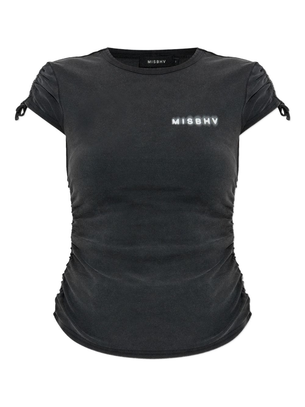 drawstring-sleeve T-shirt Highlights - Washed black - Cotton blend - Drawstring details - Short sleeves Imported Composition Organic Cotton 91%, Elastane 9% Washing instructions Read Manufacturer Guidelines
