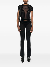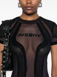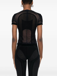 flocked mesh T-shirt Highlights - Black - Concealed rear zip fastening - Crew neck - Short sleeves Imported Composition Polyester 95%, Elastane 5% SIZE & FIT Model measurements Height 5 ft 11 in(1.8 m) Bust/Chest 31.49 in(80 cm) Hips 36.61 in(93 cm) Waist 24.4 in(62 cm) FittingInformation Designed for a close fit throughout Made from a midweight stretch fabric, this piece offers elasticity and flexibility when worn