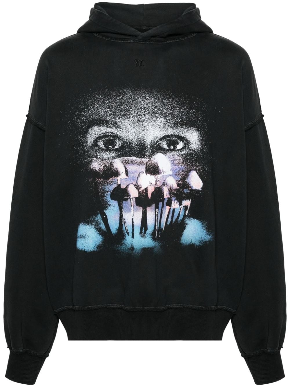 graphic-print hoodie Highlights - Black - Cotton blend - Jersey texture - Faded effect - Graphic print to the front - Classic hood - Embroidered logo at the chest - Drop shoulder - Long sleeves with ribbed cuffs - French terry lining - Ribbed hem Imported Composition Cotton 90%, Polyester 10% SIZE & FIT Model measurements Height 6 ft 1 in(1.85 m) Bust/Chest 36.22 in(92 cm) Hips 36.22 in(92 cm) Waist 27.55 in(70 cm) FittingInformation Designed to be unstructured, offering a loose fit throughout Made from a midweight non-stretch fabric, this piece offers minimal elasticity when worn This piece fits true to size – take your usual size