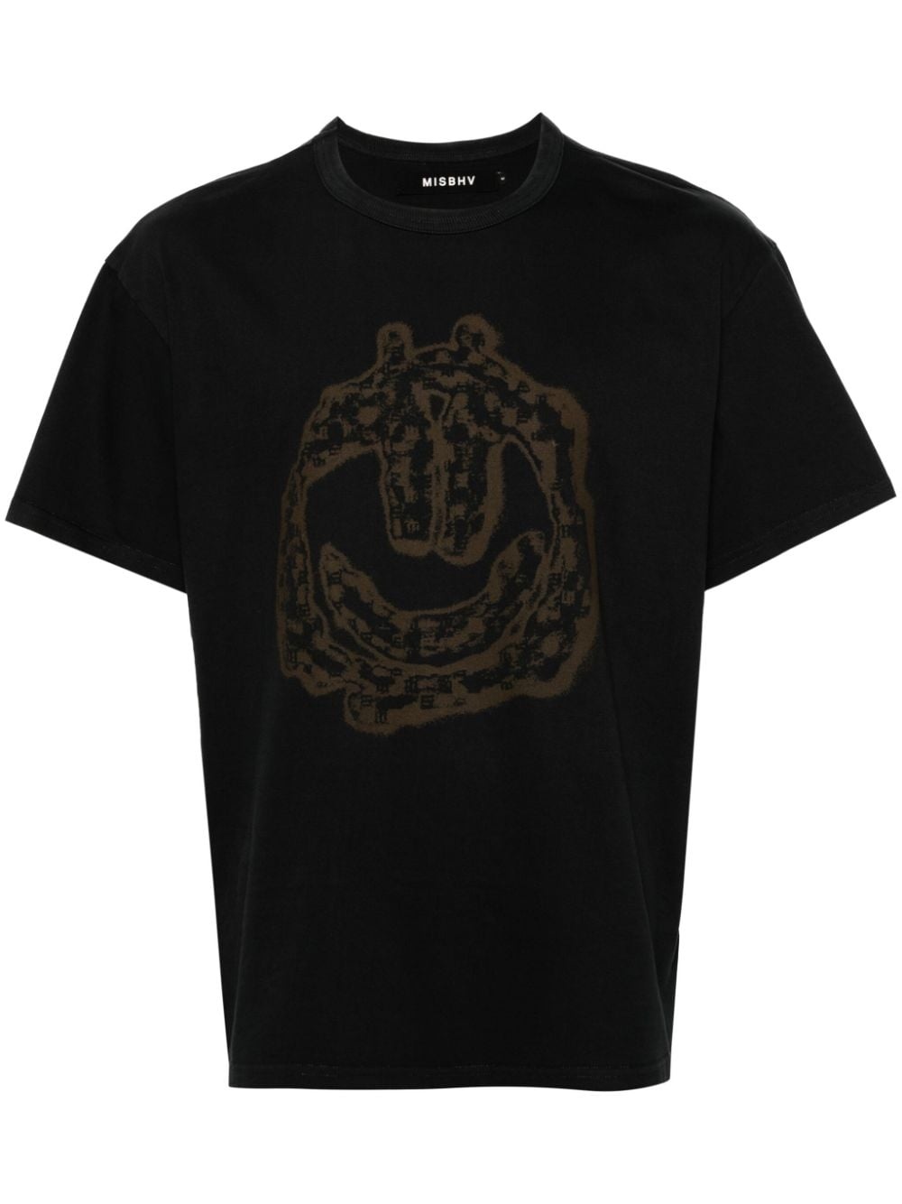 History of Acid House cotton T-shirt Highlights - Black - Cotton - Lightweight jersey - Faded effect - Graphic print to the front - Crew neck - Drop shoulder - Short sleeves - Straight hem Imported Composition Cotton 100% SIZE & FIT Model measurements Height 6 ft 2 in(1.89 m) Bust/Chest 37.79 in(96 cm) Hips 37 in(94 cm) Waist 29.92 in(76 cm) Measurement CHEST 44.09 in(112 cm) SLEEVE LENGTH 7.87 in(20 cm) LENGTH 24.8 in(63 cm) Shoulder Width 20.07 in(51 cm) FittingInformation Designed for a relaxed fit, this piece allows for comfort and movement when worn Made from a midweight non-stretch fabric, this piece offers minimal elasticity when worn This piece fits true to size – take your usual size Washing instructions Hand Wash