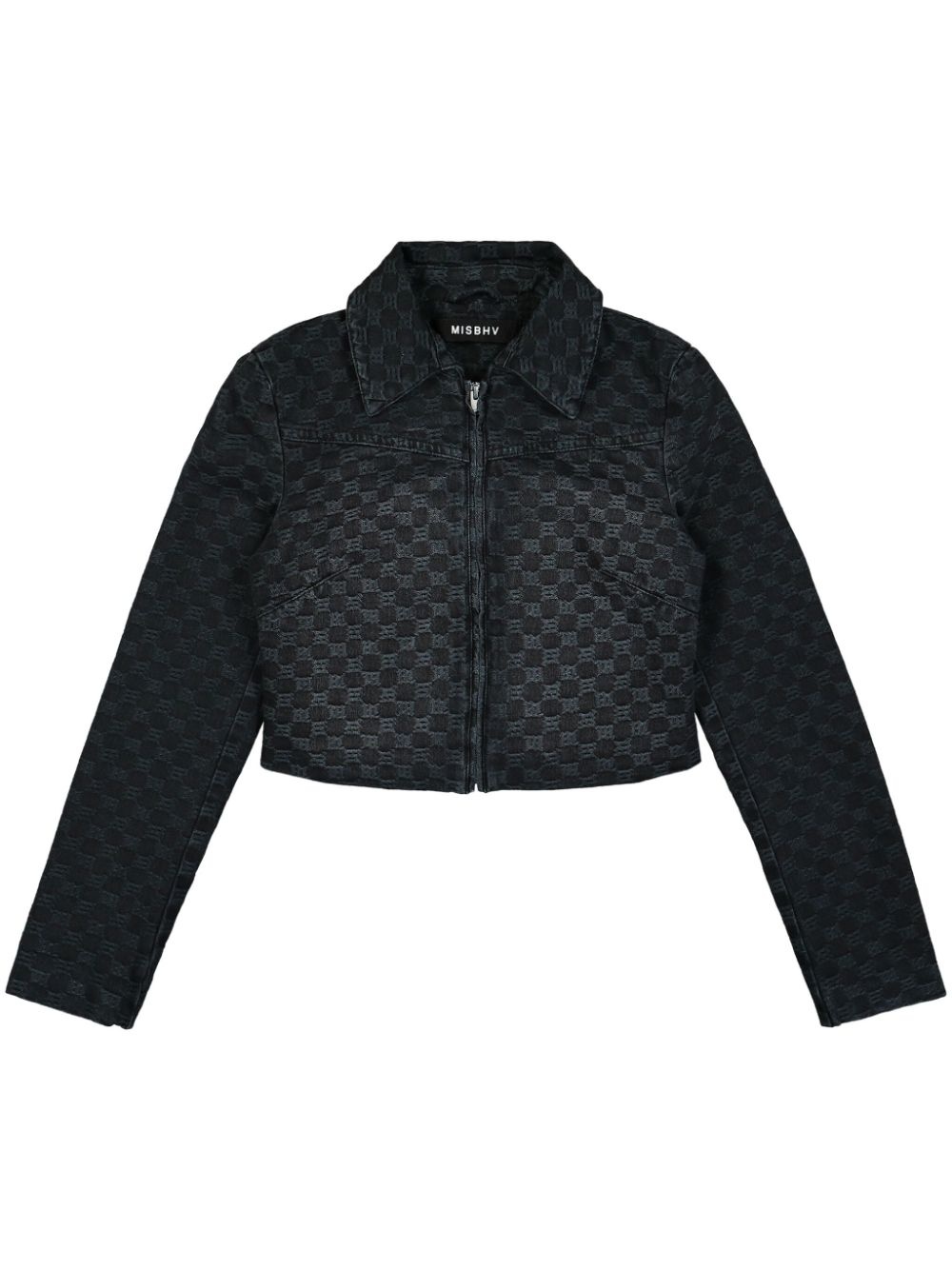 jacquard cropped jacket Highlights - Black - Jacquard logo motif - Front zip fastening - Spread collar - Long sleeves - Straight hem - Cropped Imported Composition Outer: Cotton 100% SIZE & FIT Measurement SLEEVE LENGTH 23.62 in(60 cm) LENGTH 16.92 in(43 cm) WAIST 28.34 in(72 cm) BUST 31.49 in(80 cm) Shoulder Width 14.96 in(38 cm) Washing instructions Read Manufacturer Guidelines