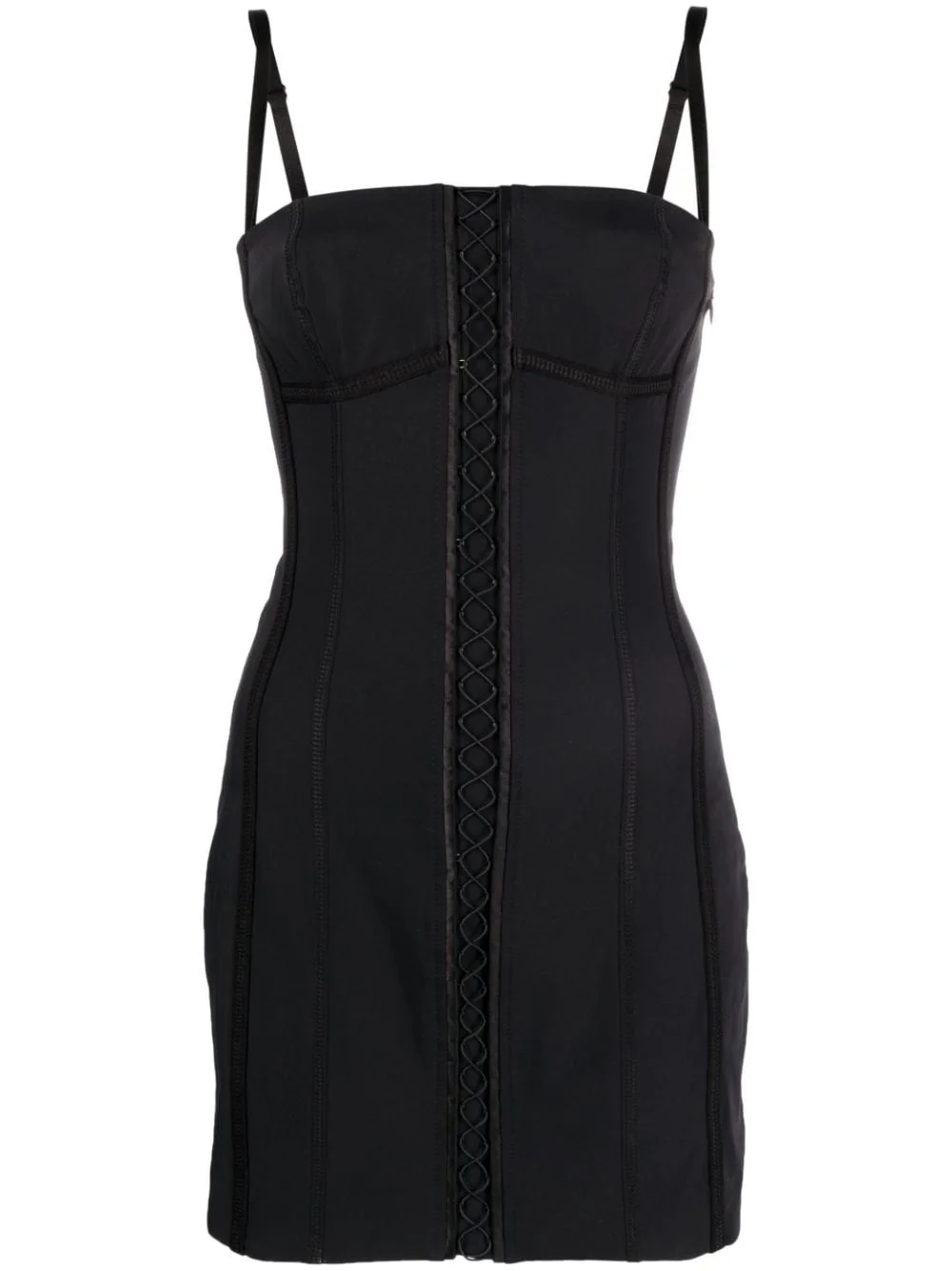 Lara boned corset minidress A practical, contemporary reinterpretation of a historical garment, MISBHV's Lara minidress boasts a simple boned silhouette held on adjustable spaghetti straps and easily fastened with a zip, as lacing to the front alludes to the classic iterations of the corset. Highlights - Black - Stretch-design - Corset style - Adjustable spaghetti straps - Square neck - Boned bodice - Lace-up detailing - Fitted waistline - Concealed rear zip fastening - Straight hem - Thigh-length Imported Composition Outer: Polyamide 48%, Cotton 42%, Spandex/Elastane 10% Lining: Polyester 94%, Spandex/Elastane 6% SIZE & FIT Model measurements Height 5 ft 10 in(1.78 m) Bust/Chest 29.92 in(76 cm) Hips 34.64 in(88 cm) Waist 23.62 in(60 cm) FittingInformation Designed for a slim fit that sits just away from the body offering a close yet comfortable fit The adjustable shoulder straps allow for a preferred fit when worn Made from a midweight stretch fabric, this piece offers elasticity and flexibility when worn This piece fits true to size – take your usual size Washing instructions Hand Wash