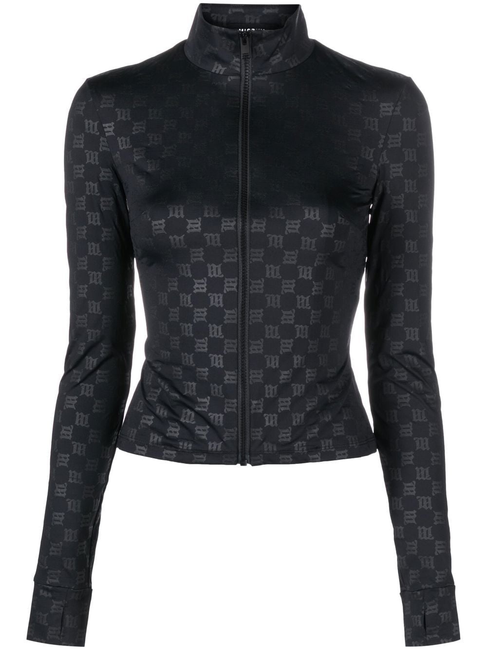 Lara logo-print top MISBHV's track top is subtly printed with the brand's Gothic-style monogram all over - a nod to logomania. The high neckline and front zip fastening lend a sporty feel. Imported Composition Polyamide 78%, Spandex/Elastane 22% SIZE & FIT Model measurements Height 5 ft 10 in(1.78 m) Bust/Chest 29.92 in(76 cm) Hips 34.64 in(88 cm) Waist 23.62 in(60 cm) FittingInformation This piece fits true to size. We recommend you get your regular size Cut for a slim fit Made with a mid-weight stretch fabric Washing instructions Dry Clean Only