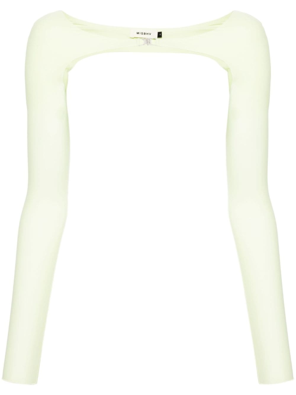 logo-plaque long-sleeve shrug Highlights - Lime green - Silver-tone logo plaque - Off-shoulder - Front clasp fastening - Long sleeves - Cropped Imported Composition Fabric 100% SIZE & FIT Model measurements Height 5 ft 10 in(1.78 m) Bust/Chest 31.49 in(80 cm) Hips 37 in(94 cm) Waist 23.62 in(60 cm) FittingInformation Designed for a close fit throughout Made from a midweight stretch fabric, this piece offers elasticity and flexibility when worn This piece fits true to size – take your usual size