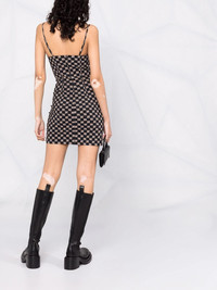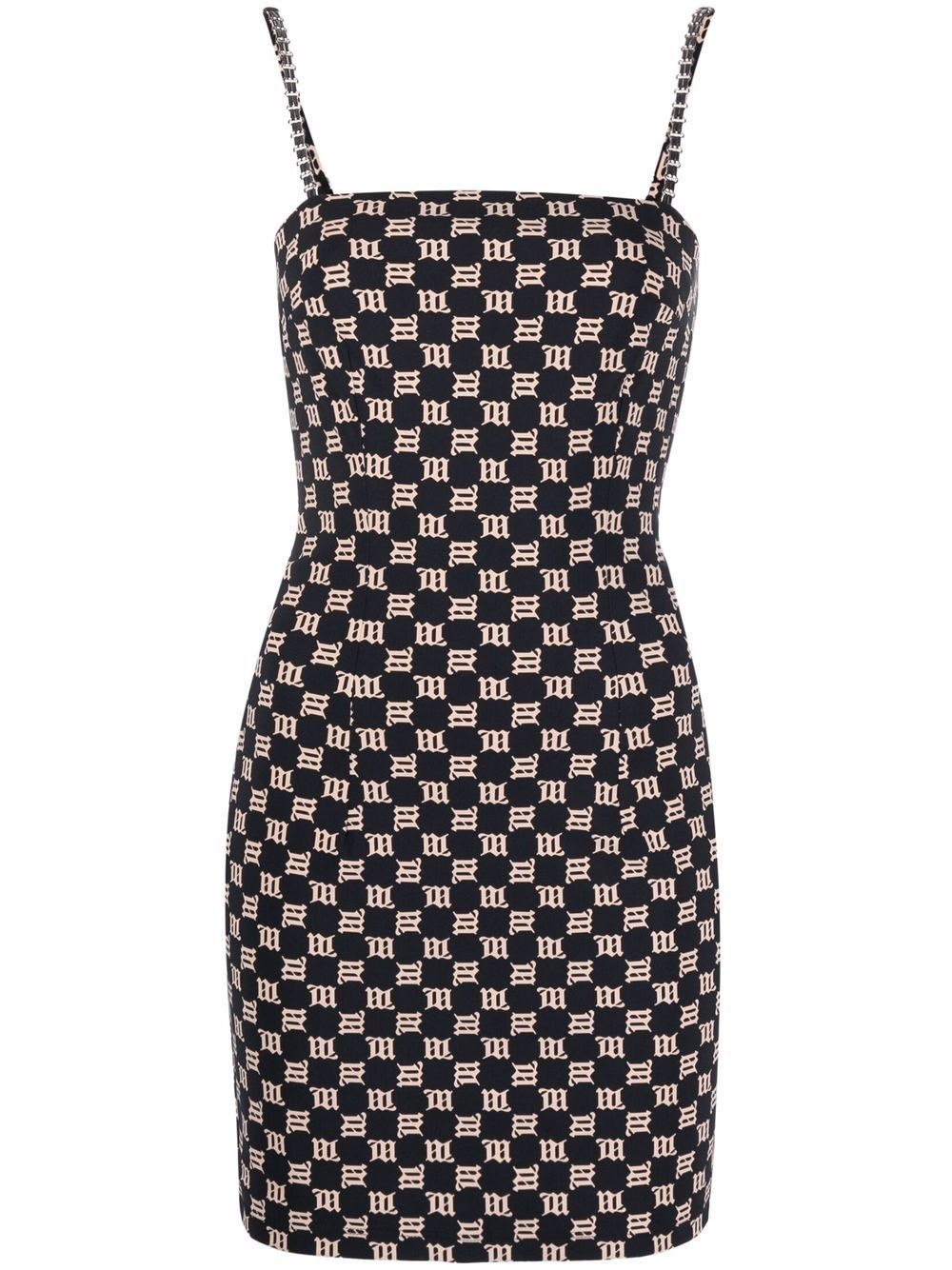 monogram-print fitted dress Showcasing a ‘90s attitude, this black and beige fitted tank dress from MISBHV is decorated with an all-over monogram pattern in a gothic font. Imported Composition Outer: Polyamide 68%, Spandex/Elastane 32% Lining: Polyamide 73%, Spandex/Elastane 27% SIZE & FIT Model measurements Height 5 ft 10 in(1.77 m) Bust/Chest 32.67 in(83 cm) Hips 35.43 in(90 cm) Waist 23.62 in(60 cm) Measurement LENGTH 33.07 in(84 cm) WAIST 22.04 in(56 cm) BUST 23.62 in(60 cm) FittingInformation This piece fits true to size. We recommend you get your regular size Cut for a slim fit Made with a mid-weight stretch fabric Washing instructions Hand Wash