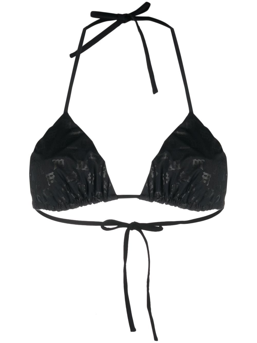 monogram-print halterneck bikini top black stretch-design tonal design monogram pattern halterneck tie fastening rear tie fastening triangle cup sleeveless Be mindful to try on swimwear over your own garments. Imported Composition Outer: Polyamide 78%, Spandex/Elastane 22% Lining: Polyamide 73%, Spandex/Elastane 27% Washing instructions Hand Wash