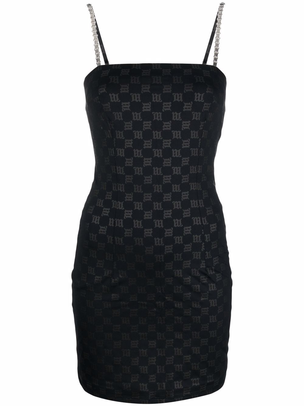 monogram-print minidress Showcasing a ‘90s attitude, this black minidress from MISBHV is decorated with an all-over monogram pattern in a gothic font. Imported Composition Outer: Polyamide 78%, Spandex/Elastane 22% Lining: Polyester 92%, Spandex/Elastane 8% SIZE & FIT Model measurements Height 5 ft 10 in(1.78 m) Bust/Chest 31.49 in(80 cm) Hips 37 in(94 cm) Waist 23.62 in(60 cm) FittingInformation This piece fits true to size. We recommend you get your regular size Cut for a close fit Made with a mid-weight stretch fabric