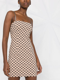 monogram-print minidress Showcasing a ‘90s attitude, this beige minidress from MISBHV is decorated with an all-over monogram pattern in a gothic font. Imported Composition Outer: Polyamide 68%, Spandex/Elastane 32% Lining: Polyamide 73%, Spandex/Elastane 27% SIZE & FIT Model measurements Height 5 ft 10 in(1.78 m) Bust/Chest 31.49 in(80 cm) Hips 37 in(94 cm) Waist 23.62 in(60 cm) FittingInformation This piece fits true to size. We recommend you get your regular size Cut for a close fit Made with a mid-weight stretch fabric