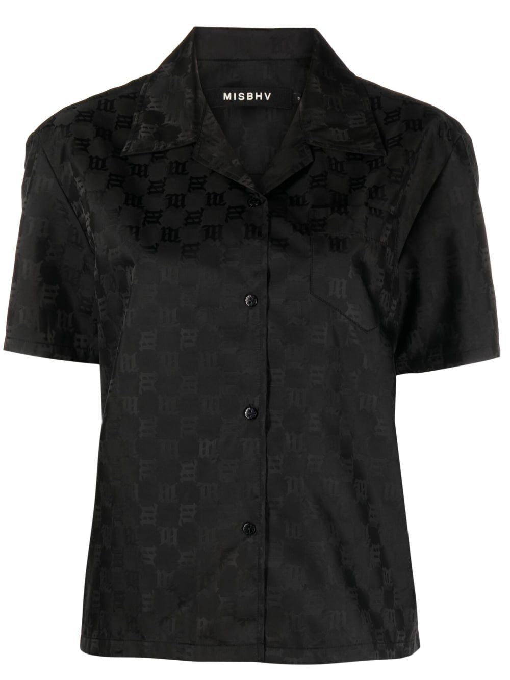 monogram-print short-sleeve shirt MISBHV showcases this timeless iteration of its all-over 'M' monogram print on a classic short-sleeved shirt which is delivered in a versatile black hue for SS23. Highlights - Black - Monogram jacquard - Cuban collar - Short sleeves - Front button fastening - Straight hem Imported Composition Polyester 60%, Polyamide 40% SIZE & FIT Model measurements Height 5 ft 10 in(1.78 m) Bust/Chest 29.92 in(76 cm) Hips 34.64 in(88 cm) Waist 23.62 in(60 cm) FittingInformation Designed for a boxy fit, intended for a loose fit throughout Made from a midweight non-stretch fabric This piece fits true to size – take your usual size Washing instructions Dry Clean Only