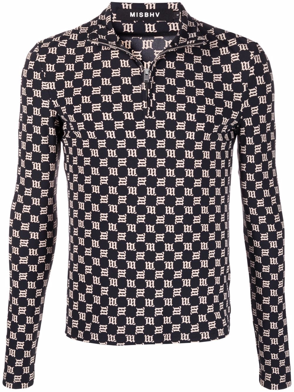 Monogram zip-up jersey Based in Poland, MISBHV is known for its expertise in casual wear. This zip-up jersey embodies just that, boasting the brand's signature monogram pattern. Imported Composition Polyamide 68%, Spandex/Elastane 32% SIZE & FIT Model measurements Height 6 ft 2 in(1.88 m) Bust/Chest 36.61 in(93 cm) Hips 35.82 in(91 cm) Waist 27.95 in(71 cm) FittingInformation This piece fits true to size. We recommend you get your regular size Cut for a close fit Made with a mid-weight stretch fabric Washing instructions Hand Wash