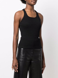ribbed-knit tank top black stretch-cotton ribbed knit embroidered logo to the side scoop neck racerback stretch-design Imported Composition Cotton 98%, Spandex/Elastane 2% SIZE & FIT Model measurements Height 5 ft 10 in(1.77 m) Bust/Chest 34.64 in(88 cm) Hips 35.43 in(90 cm) Waist 24.8 in(63 cm) Measurement BUST 25.19 in(64 cm) FittingInformation This piece fits true to size. We recommend you get your regular size Cut for a slim fit Made with a mid-weight fabric Washing instructions Machine Wash