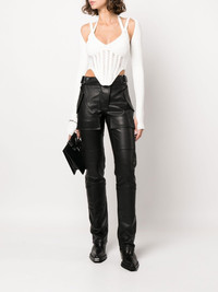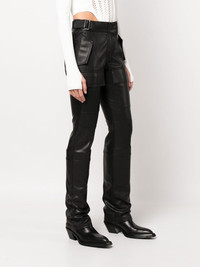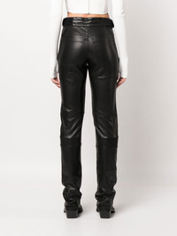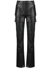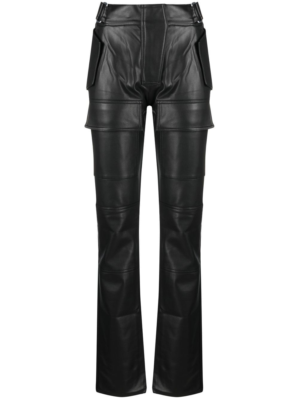 straight leg faux-leather trousers jet black high waist concealed front fastening two side flap pockets straight leg two rear patch pockets straight leg Imported Composition Polyurethane 55%, Viscose 45% SIZE & FIT Model measurements Height 5 ft 9 in(1.76 m) Bust/Chest 33.07 in(84 cm) Hips 34.64 in(88 cm) Waist 25.59 in(65 cm) FittingInformation This piece fits true to size. We recommend you get your regular size Cut for a slim fit Made with a mid-weight fabric Washing instructions Hand Wash