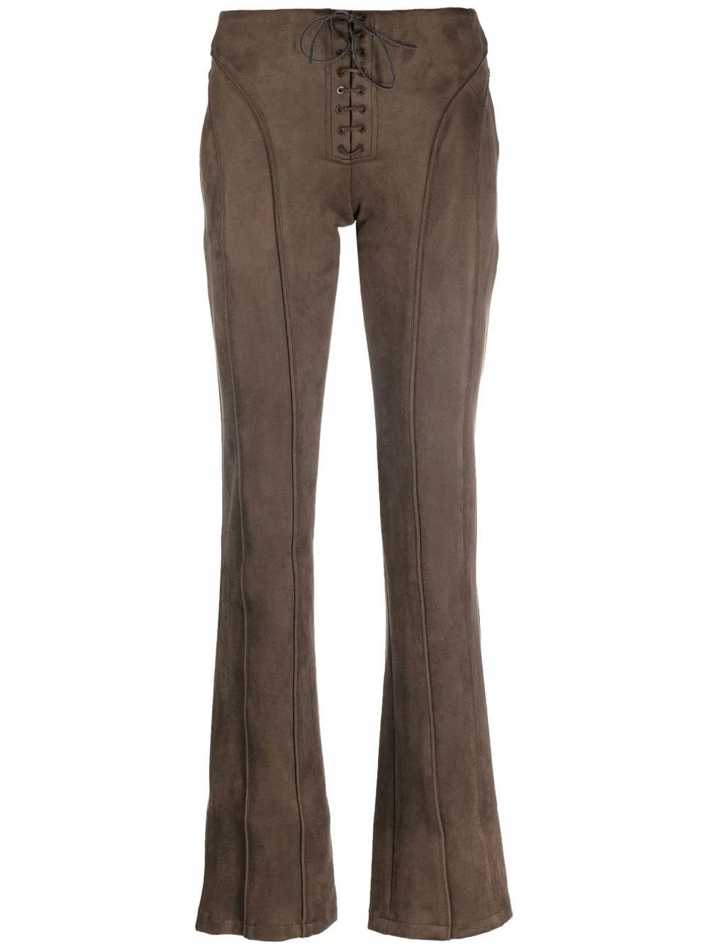 tie-front faux suede trousers auburn brown elasticated waistband front tie fastening straight leg panelled design Imported Composition Polyester 92%, Spandex/Elastane 8% Washing instructions Specialist Cleaning