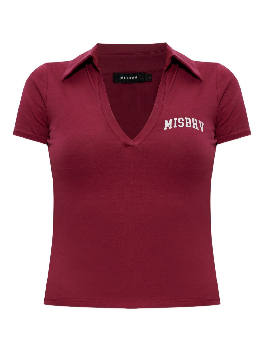 V-neck logo top Highlights - Burgundy - Logo - V-neck - Short sleeves - Collared Imported Composition Outer: Cotton 94% Elastane 6% Washing instructions Read Manufacturer Guidelines