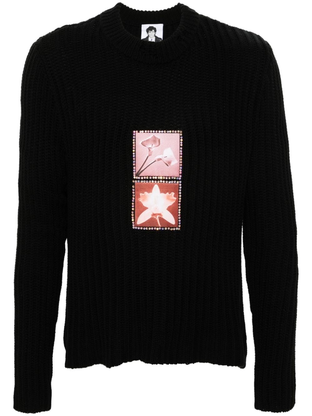 x Robert Mapplethorpe Foundation Lily / Orchid jumper Highlights - Black - Cotton - Knitted construction - Ribbed detailing - Crew neck - Long sleeves - "lily" and "orchid" graphic print patches to the front - Crystal embellishment - Straight hem Imported Composition Cotton 100% SIZE & FIT Model measurements Height 6 ft 2 in(1.88 m) Bust/Chest 36.61 in(93 cm) Hips 35.82 in(91 cm) Waist 27.95 in(71 cm) FittingInformation Designed for a slim fit, offering a comfortable fit that sits just away from the body Made with a midweight knit, this piece offers some stretch This piece fits true to size – take your usual size