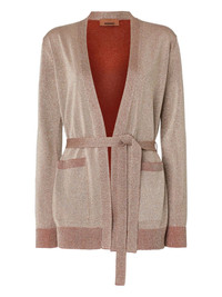 belted cardigan Highlights - Brown - Metallic knit - Self-tie belt - V-neck - Patch pockets - Ribbed trims - The item you receive may differ slightly from the item photographed. this is due to the artisanal nature with which all missoni products are constructed. Imported Composition Rayon 87%, Metallised Fibres 13% Washing instructions Read Manufacturer Guidelines