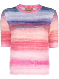 brushed-effect wool-blend top Highlights - Blue/pink - Wool blend - Tonal design - Brushed effect - Artist stripe pattern - Crew neck - Short sleeves - Straight hem - The item you receive may differ slightly from the item photographed. this is due to the artisanal nature with which all missoni products are constructed. Made in Italy Composition Wool 80%, Alpaca 7%, Polyamide 7%, Mohair 6% SIZE & FIT Model measurements Height 5 ft 10 in(1.78 m) Bust/Chest 29.92 in(76 cm) Hips 34.64 in(88 cm) Waist 23.62 in(60 cm) FittingInformation Designed for a slim fit that sits just away from the body offering a close yet comfortable fit Made with a lightweight knit, this piece offers some stretch This piece fits true to size – take your usual size