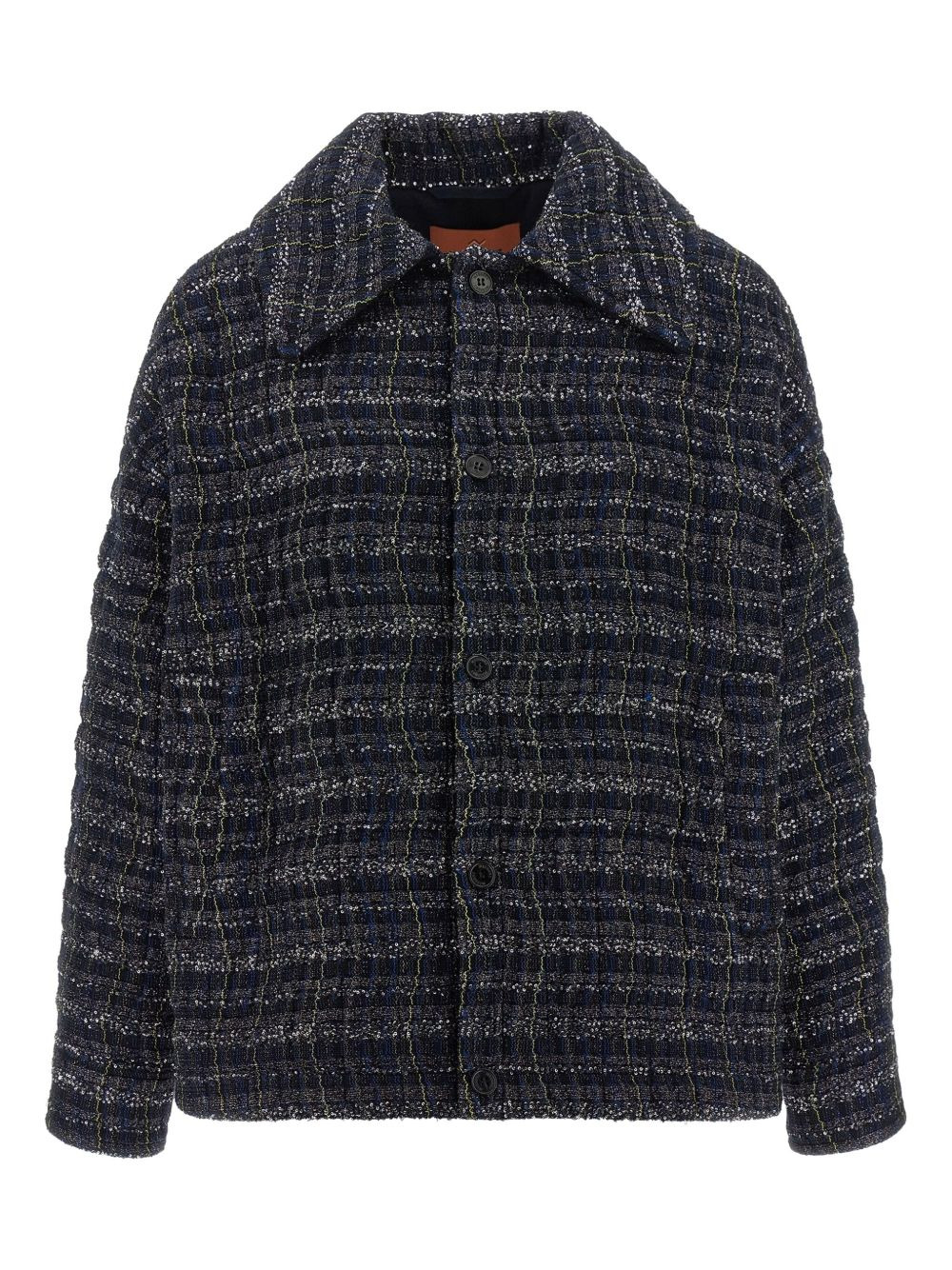 Caperdoni oversized coat Highlights - Blue - Front button fastening - Long sleeves - Buttoned cuffs Made In Italy Composition Viscose 63%, Polyamide 16%, Metal 8%, Wool 7%, Cotton 3%, Polyester 3% Washing instructions Read Manufacturer Guidelines