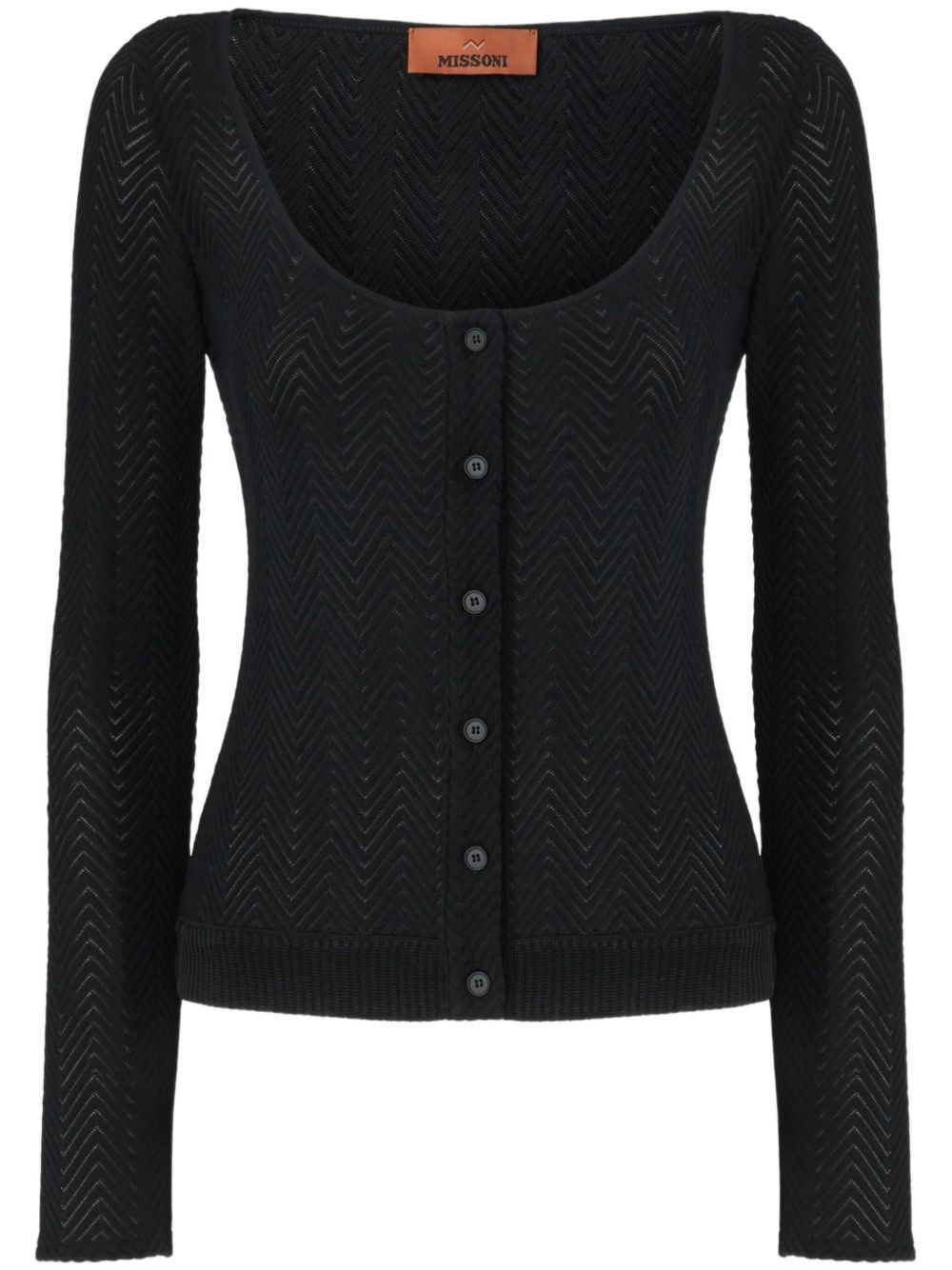 chevron cardigan Highlights - Black - Front button fastening - Round neck - Long sleeves - The item you receive may differ slightly from the item photographed. this is due to the artisanal nature with which all missoni products are constructed. Made in Italy Composition Outer: Cotton 74%, Rayon 26% Lining: Rayon 96%, Elastane 4%