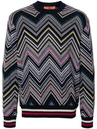 chevron-knit sweater Highlights - Midnight blue - Multicolour - Cotton blend - Chevron knit - Chevron print - Stripe trim - Crew neck - Long sleeves - Ribbed cuffs and hem - Straight hem - The item you receive may differ slightly from the item photographed. this is due to the artisanal nature with which all missoni products are constructed. Made in Italy Composition Cotton 89%, Polyamide 11% SIZE & FIT Model measurements Height 6 ft 2 in(1.87 m) Bust/Chest 36.41 in(92.5 cm) Hips 35.43 in(90 cm) Waist 29.52 in(75 cm) FittingInformation Designed for a relaxed fit, this piece allows for comfort and movement when worn The ribbed hem offers a close, comfortable fit Made with a midweight knit, this piece offers some stretch This piece fits true to size – take your usual size