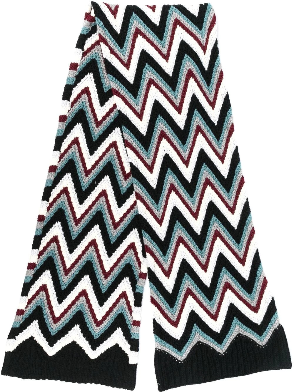 chevron-knit wool scarf black/multicolour wool chevron knit knitted construction wraparound style Made in Italy Composition Wool 100% SIZE & FIT Measurement LENGTH 70.86 in(180 cm) WIDTH 9.84 in(25 cm) Washing instructions Dry Clean Only