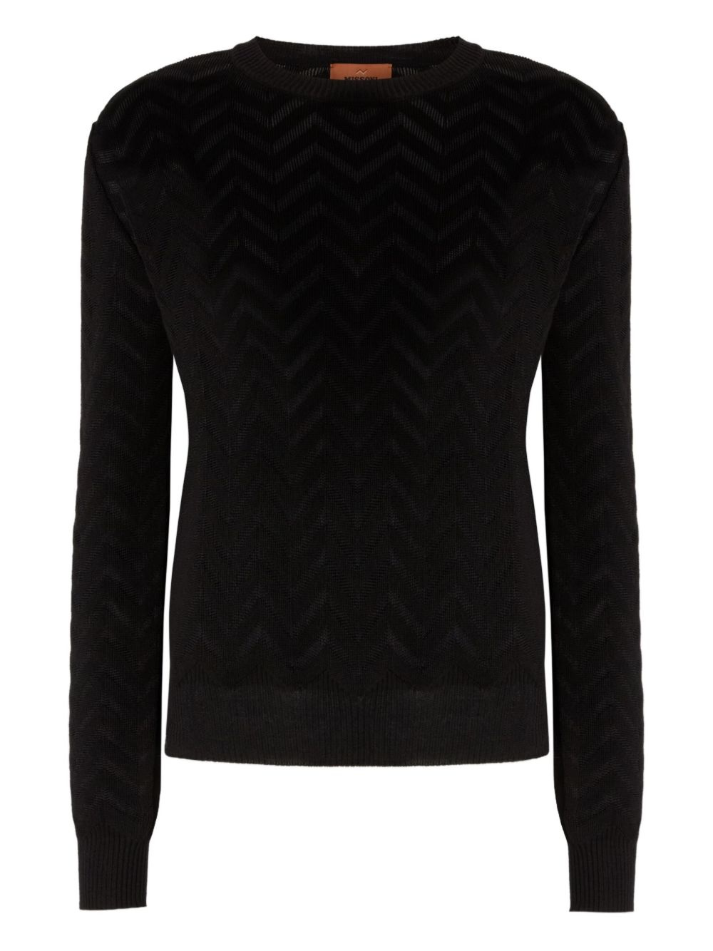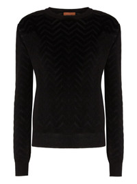 chevron-motif crewneck sweater Highlights - Black - Long sleeves - Ribbed cuffs and hem - Straight hem - The item you receive may differ slightly from the item photographed. this is due to the artisanal nature with which all missoni products are constructed. Made in Italy Composition Cotton 52%, Rayon 46%, Spandex/Elastane 1%, Polyamide 1%