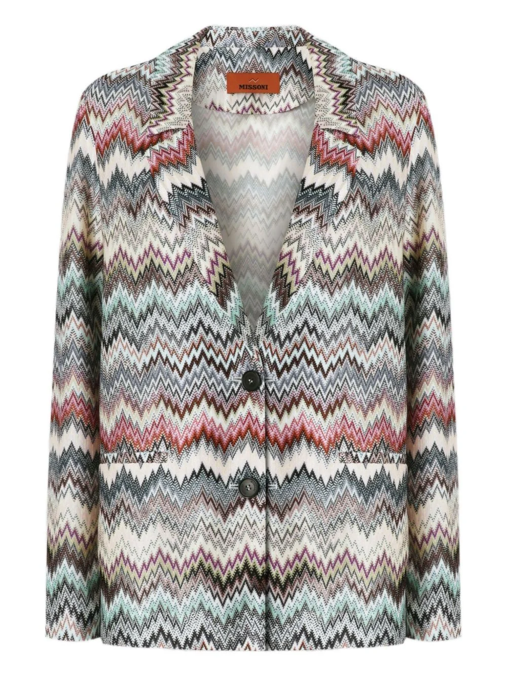 chevron-pattern blazer Highlights - White - Chevron pattern - Single button fastening - Long sleeves - Patch pockets - The item you receive may differ slightly from the item photographed. this is due to the artisanal nature with which all missoni products are constructed. Made in Italy Composition Lining: Polyester 100% Outer: Rayon 100% Washing instructions Read Manufacturer Guidelines