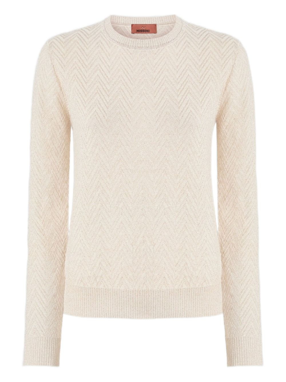 chevron-pattern crew-neck sweater Highlights - Beige - Chevron pattern - Crew neck - Long sleeves - Ribbed cuffs - Ribbed hem - The item you receive may diff er slightly from the item photographed. this is due to the artisanal nature with which all missoni products are constructed. Imported Composition Fabric 100% Washing instructions Read Manufacturer Guidelines